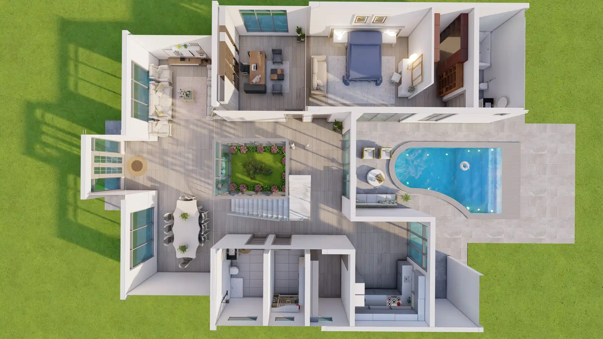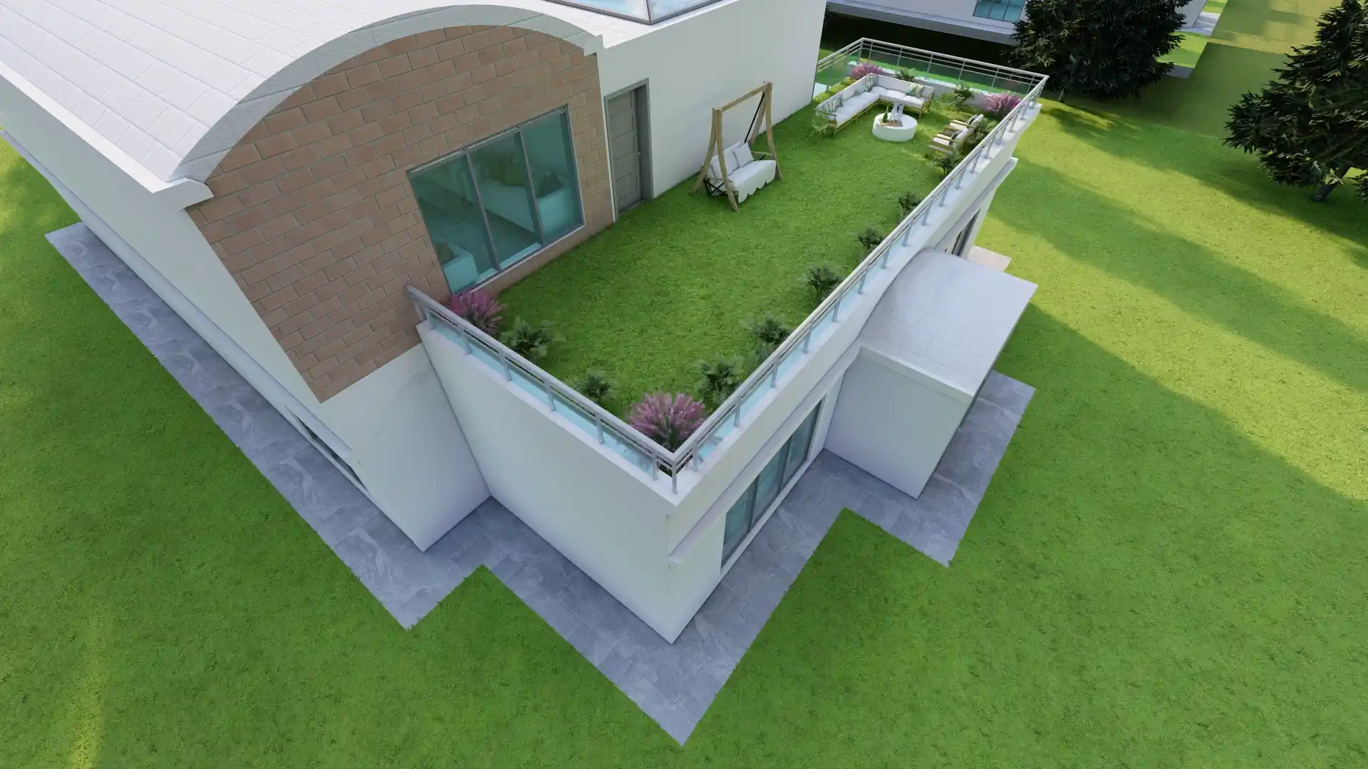 El Patio Superior transforma el techo en un espacio ajardinado utilizable, mejorando la habitabilidad y el valor.